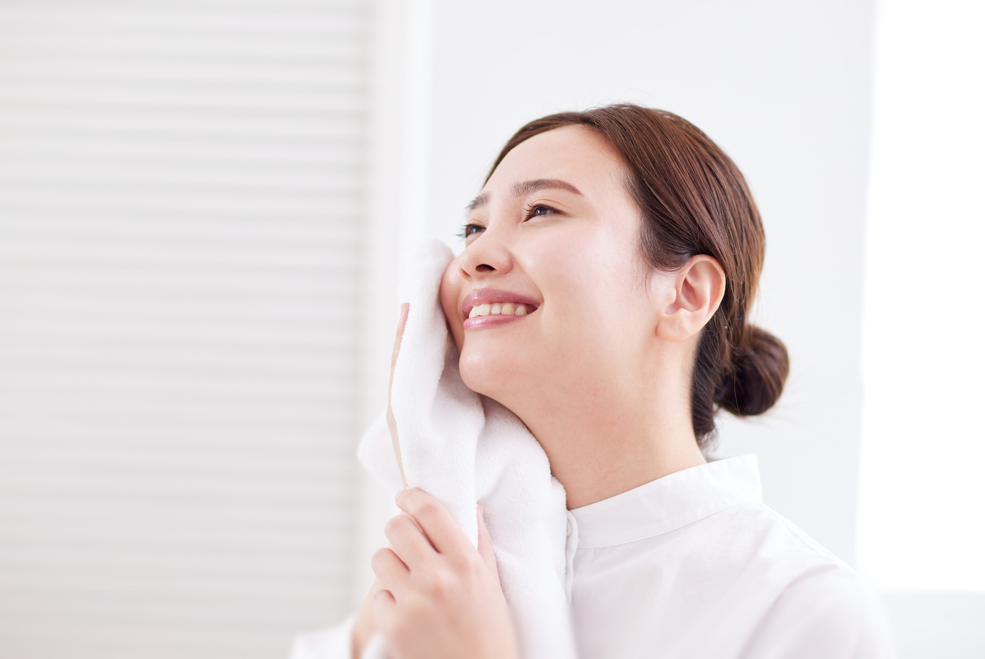 アウトバスクレンジングでは、肌への負担を抑える工夫が大切です。毛穴が閉じている状態ではクレンジング剤がなじみにくいため、蒸しタオルなどで軽く温めてから行うと、よりやさしく汚れを落としやすくなります。